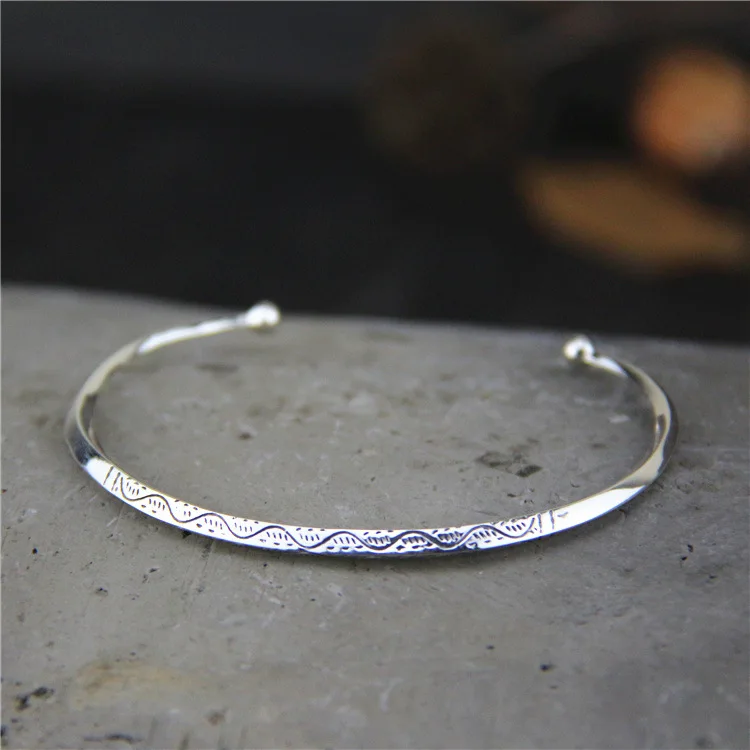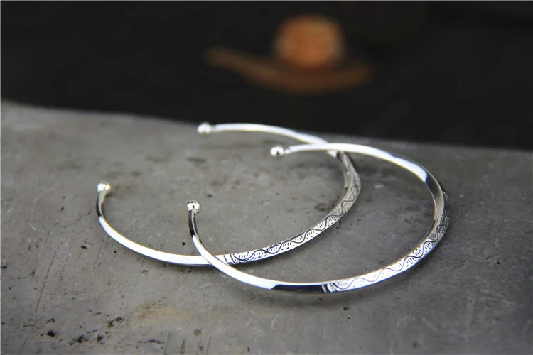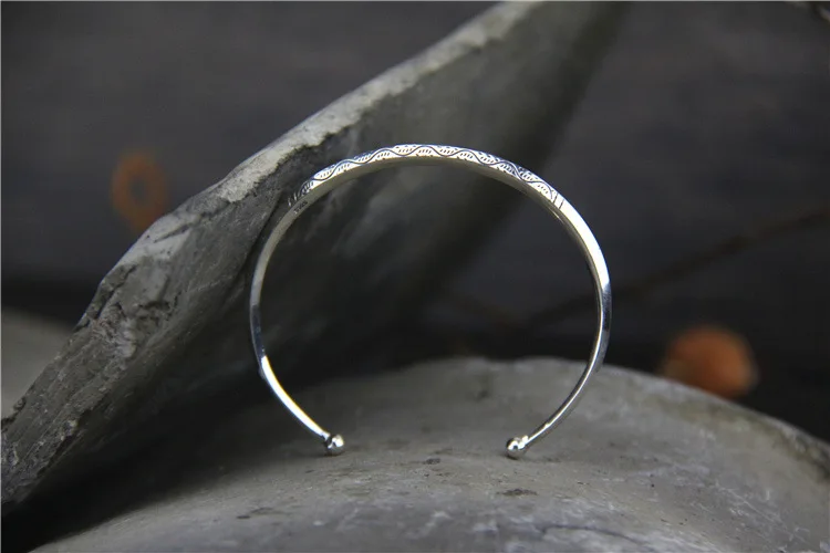 Best Quality Fashion Jewelry Retro Thai Silver Chiang Mai Handmade S925 Sterling Silver Open Ended Bangle Men An