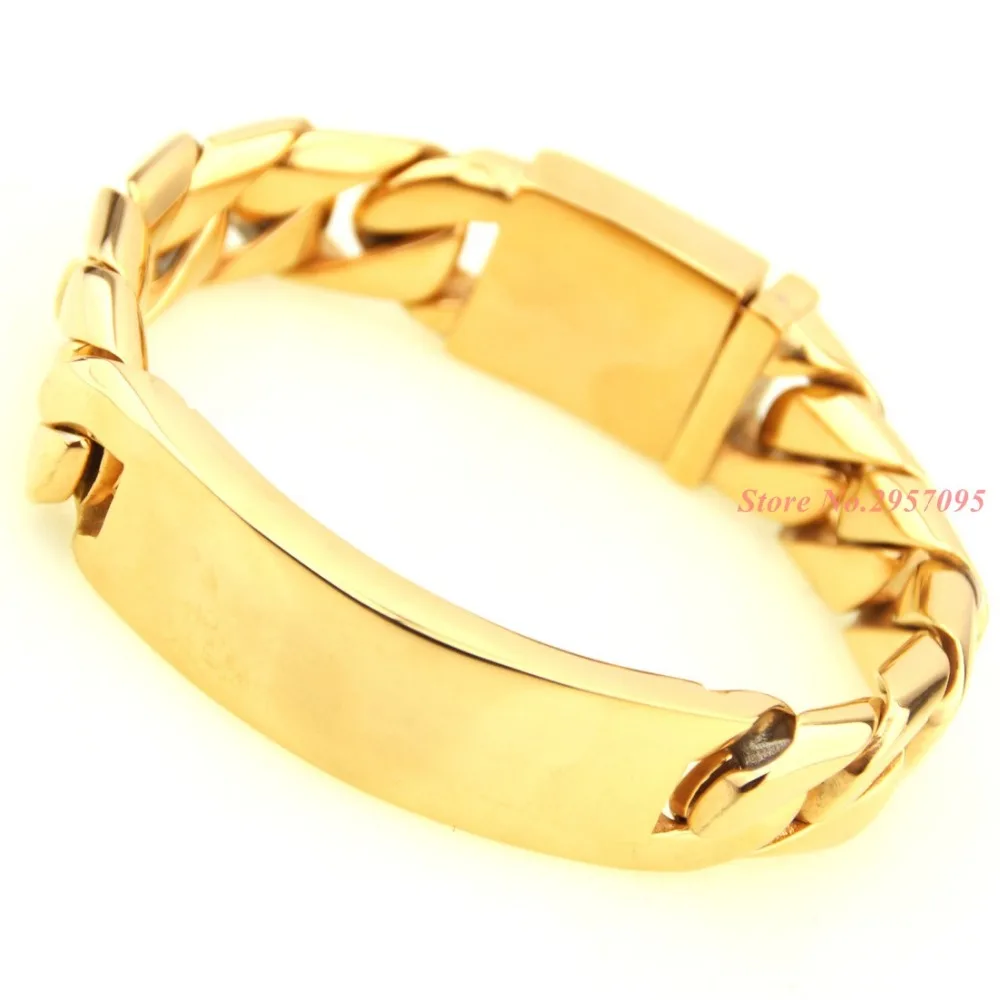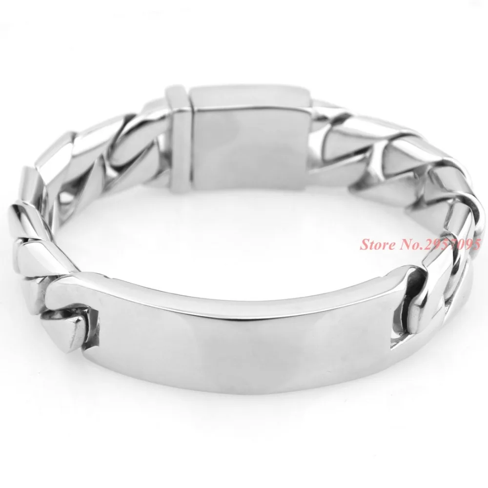 HIGH QUALITY 17MM Super Wide Shiny Bracelet Men Cool Punk Stainless Steel Jewelry Fashion New Men's Bracelets &