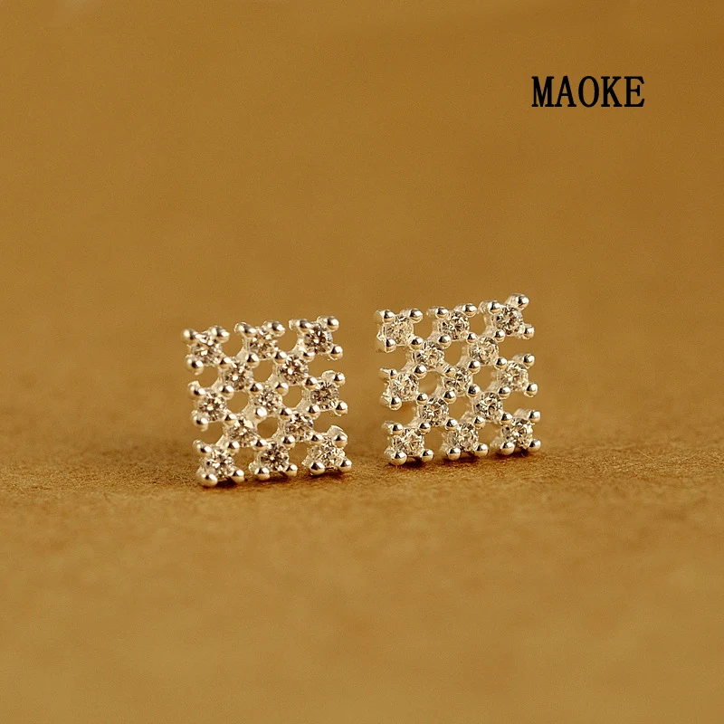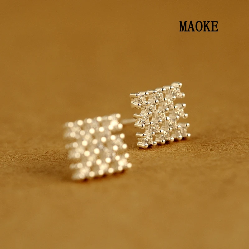 Promotions Zircon Square Geometric Sterling Silver Stud Earrings Fashion Jewelry for Women's Fashio