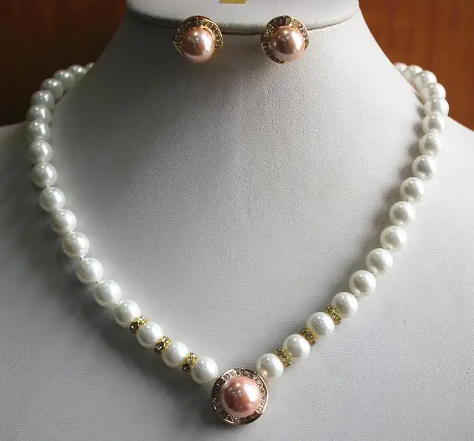 white baroque pearl & carved girl necklace 17-18" Bridal Wedding word silver-jewelry