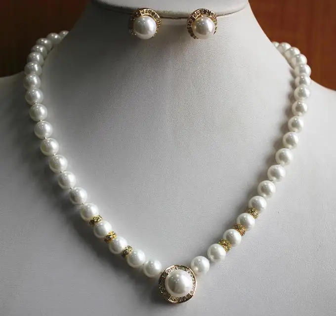 ORIGINAL white baroque pearl & carved girl necklace 17-18" Bridal Wedding word silver-jewelry