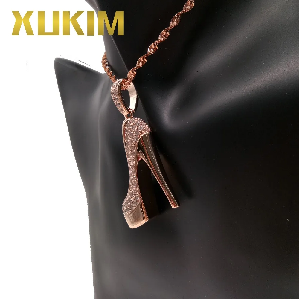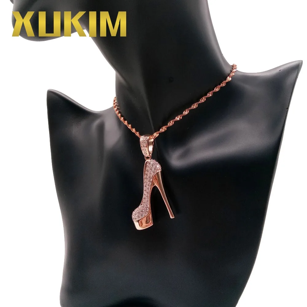 BEST Xukim Jewelry Beautiful Iced Out Hip Hop CZ Rose Gold Color High Heel Pendant Necklace for Women Pa