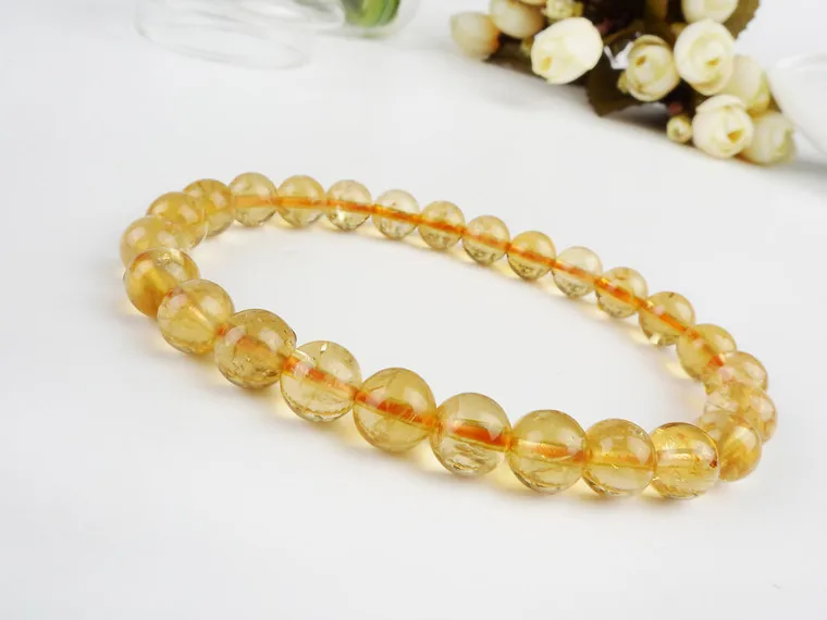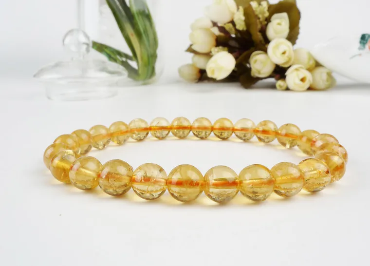 2018 Newly Natural Yellow Quartz Crystal Round Bead Bracelet 8mm Fashion Jewelry Stretch Bracelets