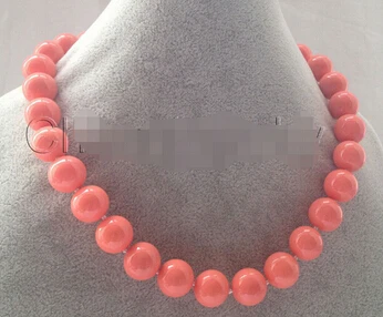 HIGH QUALITY Beautiful 18" 14mm perfect round pink coral color south sea shell pearl necklace AAA>Wholesale Love