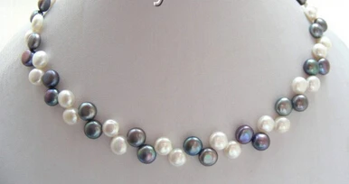 HOT Sale champagne south 17" 7mm white black real freshwater pearls necklace e1249 Factory Wholesale price W