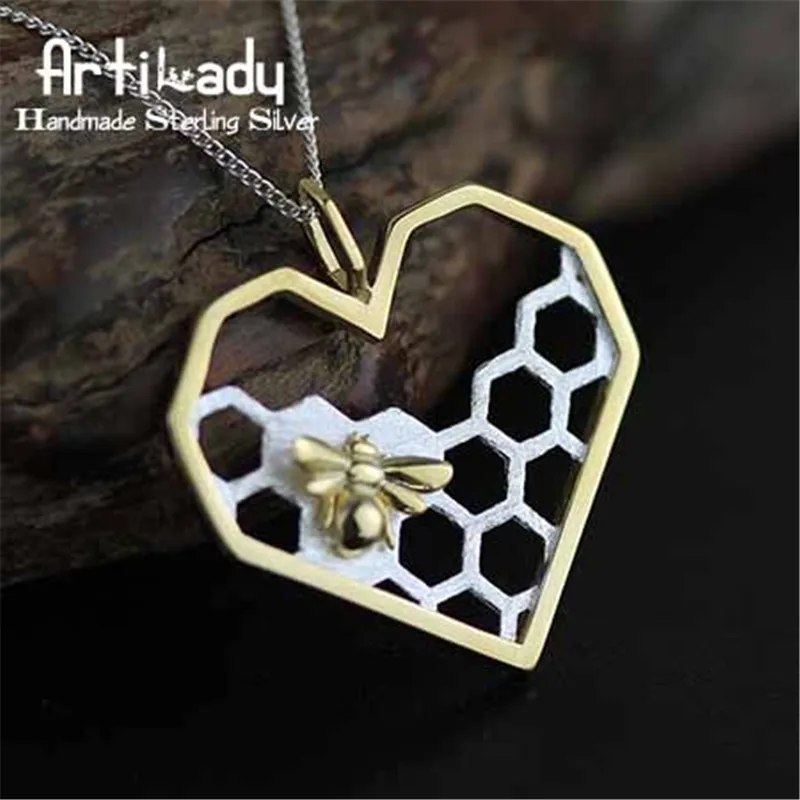 Artilady 925 sterling silver honey comb pendant elegant handmade bee comb pendant for women jewelry