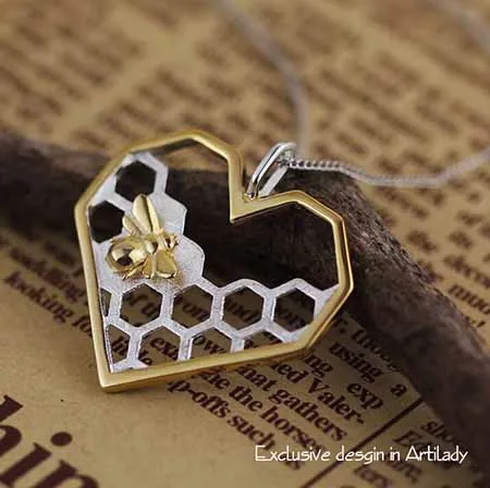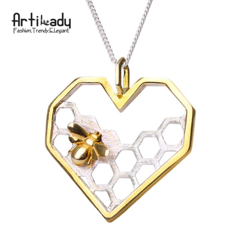 ORIGINAL Artilady 925 sterling silver honey comb pendant elegant handmade bee comb pendant for women jewelry