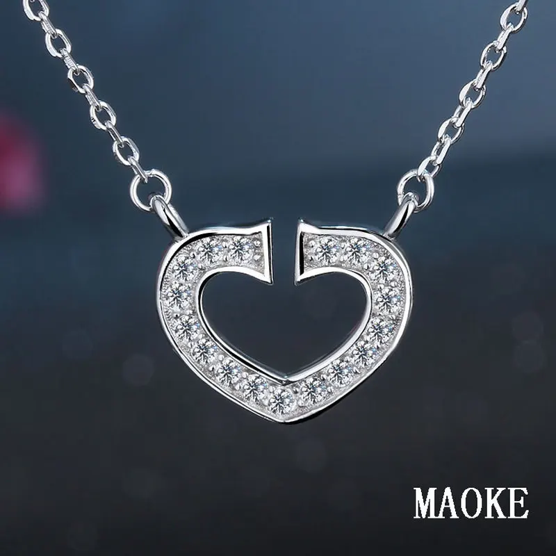 ORIGINAL Promotional S925 Sterling Silver Zircon Heart Necklace Fashion Wild Love Pendant Fashion Jewelry fo