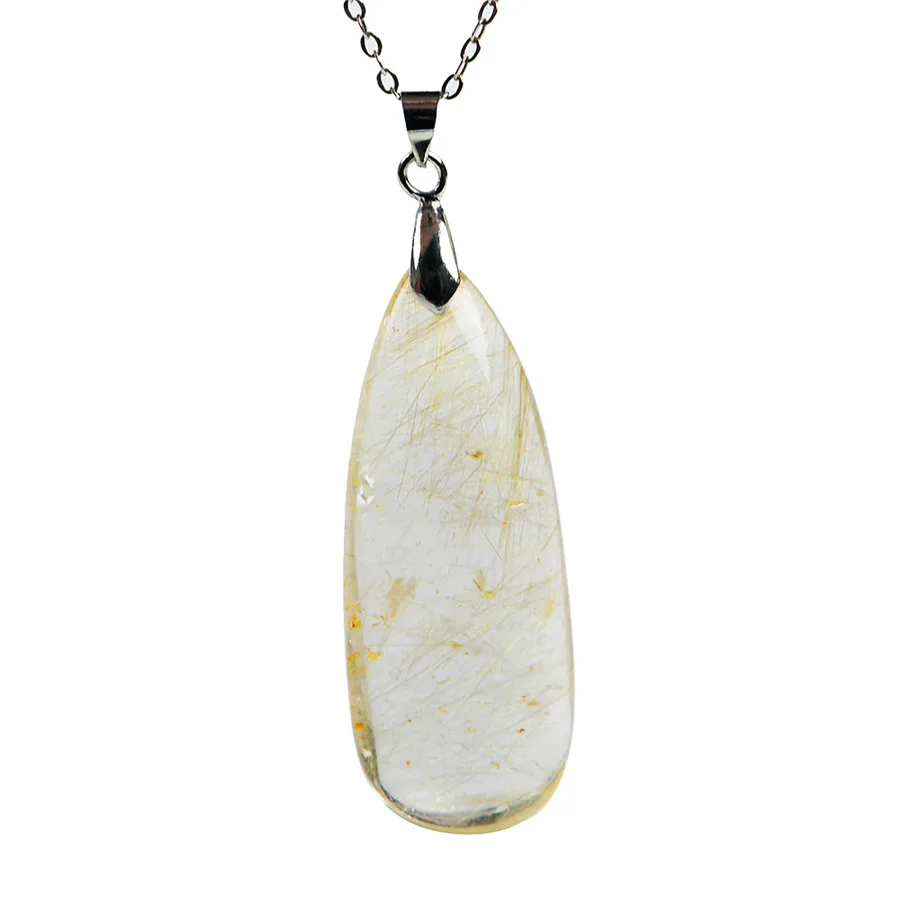 Genuine Natural Titanium Rutilated Quartz Crystal Waterdrop Bead Fashion Women Necklace Pendant 44*