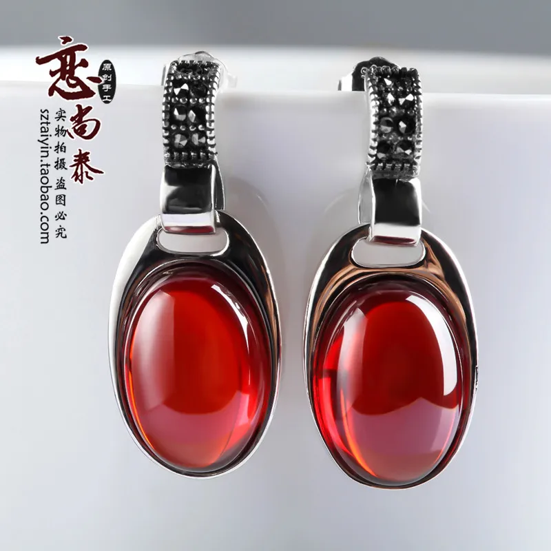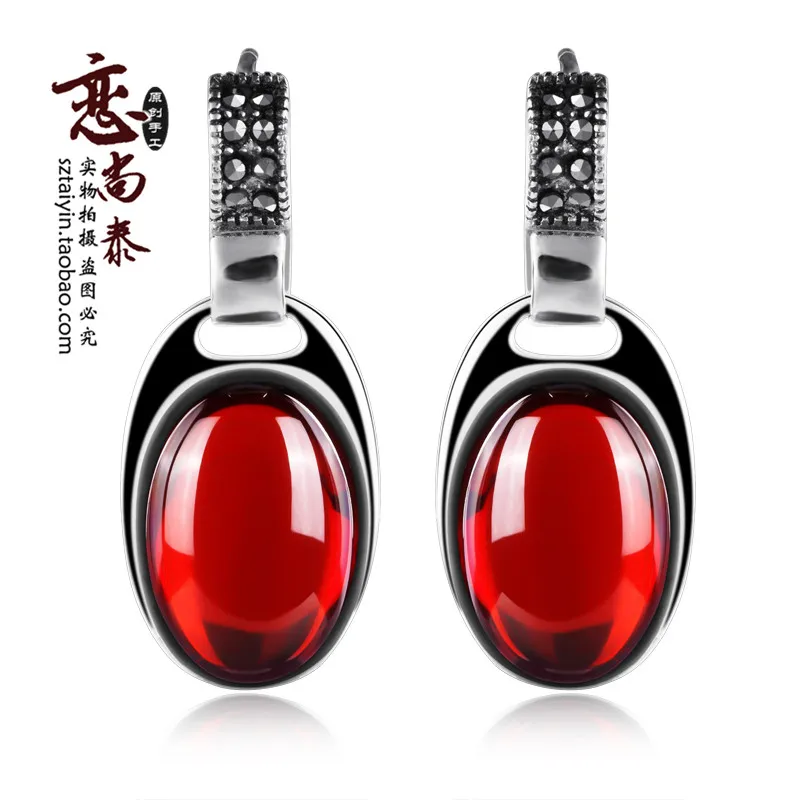 Best 13.5cm high quality 925 Sterling silver natural Semi-precious stones red Garnet Retro Earrings fema