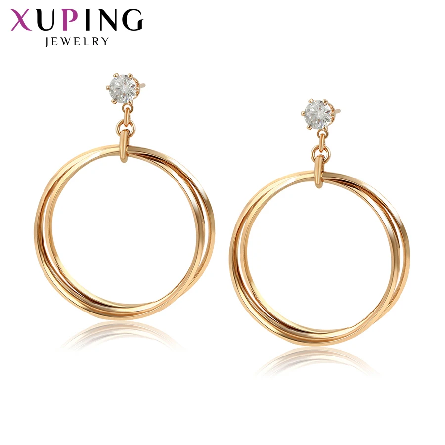 Review Top Xuping Sexy Gold-color Plated Hoops Earrings for Women Simple Trendy Jewelry Round Earrings Pretty