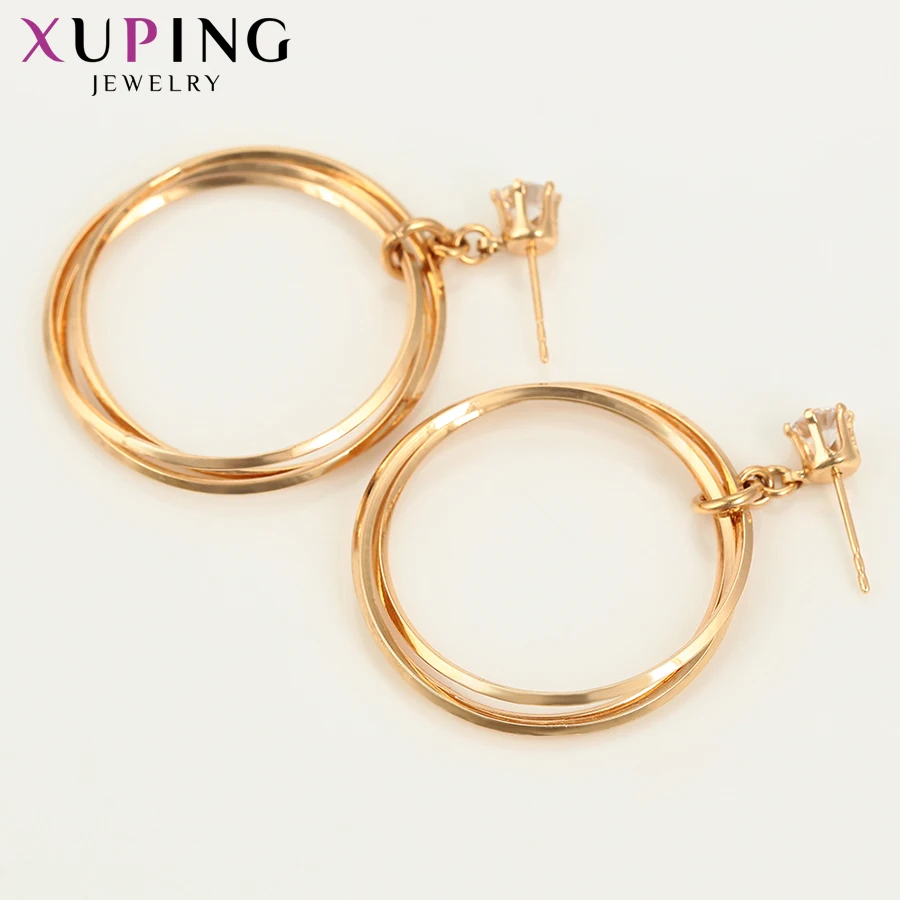 BEST SELLER Xuping Sexy Gold-color Plated Hoops Earrings for Women Simple Trendy Jewelry Round Earrings Pretty